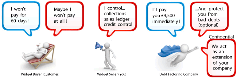 With Factoring & Invoice Discounting you receive up to 95% of the value of your invoices immediately instead of waiting to be paid by your customers. You pay a small fee to the factoring company for this up front finance but also receive a large number of other services which save you money. The different types (describe below) allow you to choose between using the additional services of the company (factoring) or retain more control over managing your invoices / pay less in fees (invoice discounting). With invoice discounting you can also choose whether you want your customers are informed that you are using the service or not. Factoring / invoice discounting have many advantages over and above the finance aspect which result in substanital cost savings to the business and are explained fully on this site. Additionally the ffinance itself is also normally easier to obtain than other forms of finance as it is the credit worthiness of customers on which the finanace is based and not your comany. This is one of the advantages as finance can be secured without risking valuable business assets as collateral.